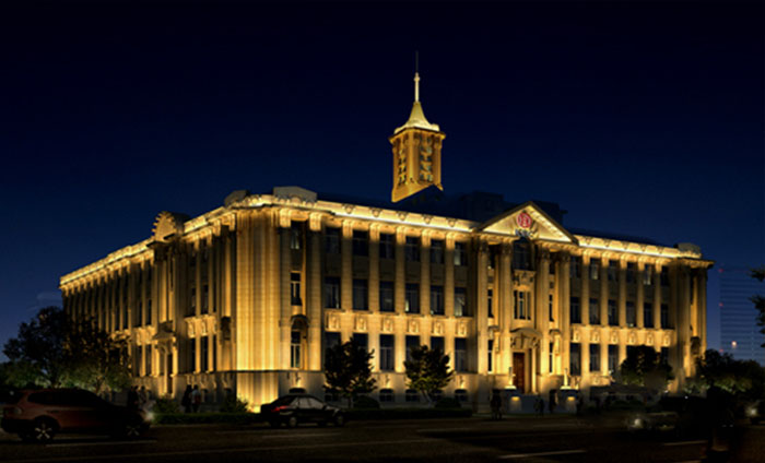 像眾所周知的中國古代建筑的大屋頂坡型物面在樓體夜景照明的表現(xiàn)上通常是一個比較難處理的部分,受面比較大的原因是一方面,另外一方面是如何個立面進行一個有機的結(jié)合,讓整體照明更具有觀賞性,更為協(xié)調(diào)統(tǒng)一。目前大部分的古代建筑夜景照明項目上都采用了泛光照明的方式,我們在上一期文章中就提及過泛光照明的手法,那這種照明方式能所面臨的問題是燈具的安裝位置和照明效果的理想程度。試想一下,如果將燈具安裝在建筑物的表面上,如果是小型的燈具還比較隱藏,可以不被人們所注意,但是如果照明對象是比較寬深的屋面上,可能就需要用大功率的燈具,一般來說大功率的燈具體量也很大,這不僅會影響建筑物的景觀完整,也有可能對建筑結(jié)構(gòu)造成損毀。