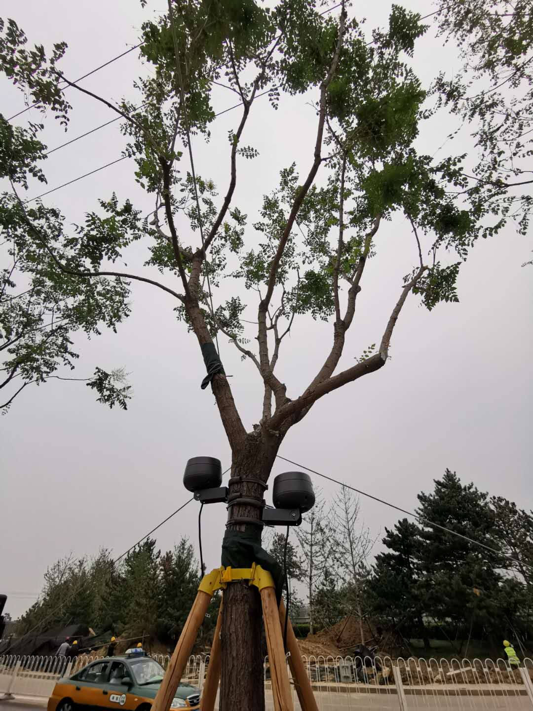 不同節(jié)點和景別采用不同的燈具,香泉環(huán)島、植物園南門入口公園以及紅山香茵的照樹燈選用功率42W的投光燈,依據(jù)現(xiàn)場立桿布置燈具,形成遠(yuǎn)投效果,并提供功能照明。公園格柵、公園堆石、樹池?fù)鯄x用地埋燈均勻打亮。香林疊翠根據(jù)環(huán)境選用半地埋安裝形式,整體貼合環(huán)境意境。