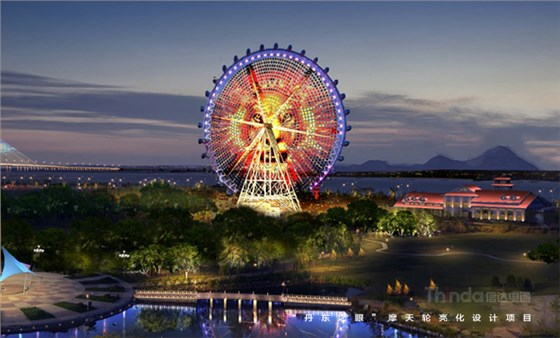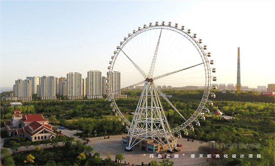 的精髓在于空間,而空間的精髓在于光。每當(dāng)夜晚降臨,彩燈閃爍,摩天輪一圈圈地劃過(guò)點(diǎn)亮丹東最美天際線,顯現(xiàn)出其非凡的魅力,一個(gè)條形分明且?guī)в戌U空形式的立體空間,用光去逐步表現(xiàn)它變化的豐富表情,用光去逐步配合它轉(zhuǎn)動(dòng)的動(dòng)感韻律,轉(zhuǎn)輪鑲嵌著燈光緩緩移動(dòng),座艙伴隨著底部光暈漫步暢游,亮化完成摩天輪的觀景照明效果相當(dāng)突出,而在絢麗多姿、變幻無(wú)窮的燈光照明亮化點(diǎn)綴之下,“丹東之眼”成為中朝邊境上耀眼的明珠。