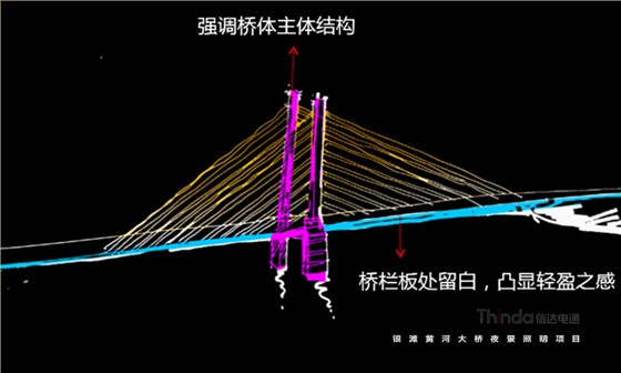 銀灘黃河大橋夜景亮化設(shè)計(jì)中我們以功能性、裝飾性照明為主,同時(shí)也避免高亮度、多光色對(duì)行車造成安全隱患。