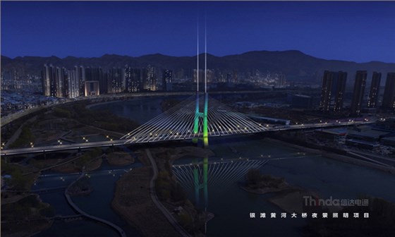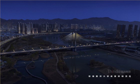 銀灘黃河大橋是蘭州市城市交通樞紐工程,北通蘭州中川國(guó)際機(jī)場(chǎng),南達(dá)蘭州北站。信達(dá)電通在夜景亮化設(shè)計(jì)中以功能性、裝飾性照明為主,同時(shí)也避免高亮度、多光色對(duì)行車造成安全隱患。橋身和纜繩的彩光使得大橋成為夜間最獨(dú)特的風(fēng)景。
