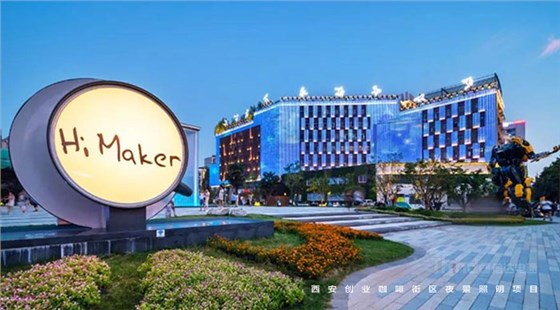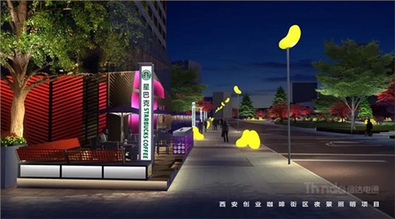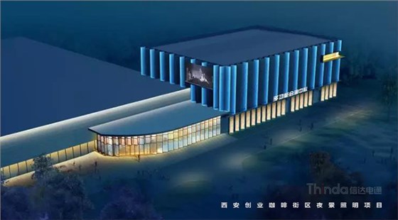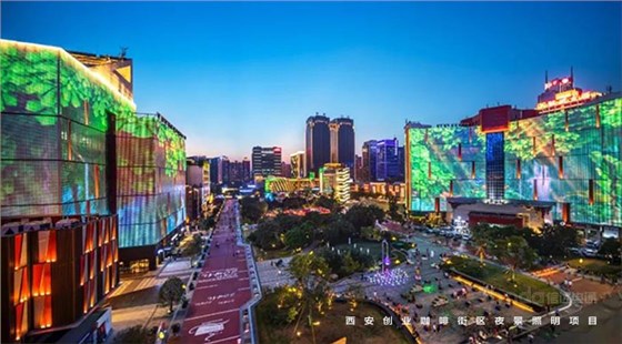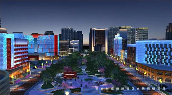 信達電通在2017年完成了眾多大型城市亮化項目,其中濃墨重彩的一筆當屬西安創(chuàng)業(yè)咖啡街區(qū)的亮化。