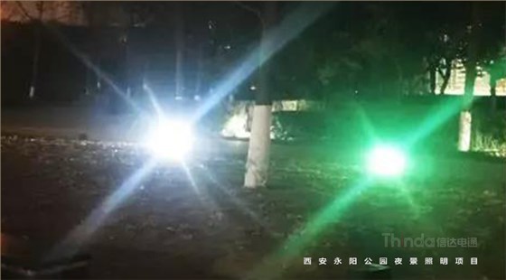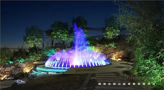 永陽公園的亮化使用綠色智控系統。燈光材料的選擇是根據被照物的具體情況選用低耗能的LED、EL光源和用紫外線照射發光的熒光涂料做裝飾照明。