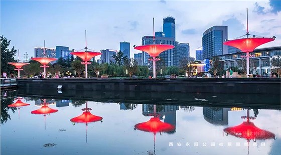 永陽公園是西安一個別開生面的科技公園,因地處唐代長安永陽坊而得名,位于西安市丈八東路和西灃公路十字路口,是由西安高新技術產業開發區興建,占地10萬平方米,2006年對外開放。繼2016年完成西安高新區夜景亮化設計之后,信達電通對永陽公園進行夜景照明規劃設計。