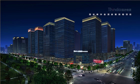 信達電通根據辦公樓的戶外亮化照明設計要素和泰華·金貿國際建筑景觀特點以及所處的地理位置,對泰華·金貿國際進行戶外亮化照明設計改造工作。在泰華·金貿國際的亮化設計中信達電通照明改變了泰華·金貿國際之前的色系昏暗,增加了建筑的外立面整體效果及廣告照明的效果,洗亮泰華·金貿國際建筑頂部,凸顯天際效果。使泰華·金貿國際成為西安夜色下一道亮麗的風景。