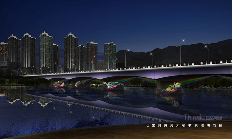 七里河黃河大橋建于1977年,是當時國內新建的黃河上最大跨度的鋼筋混凝土懸臂梁橋。信達對其夜景提升提供全過程服務。在照明設計中,強調扶手、欄板、橋墩結構,功能性與裝飾性照明兼具,能夠突出橋體的端莊與大氣。在工程施工期間,信達電通全程把控效果展現,并提供后期技術咨詢維護服務。