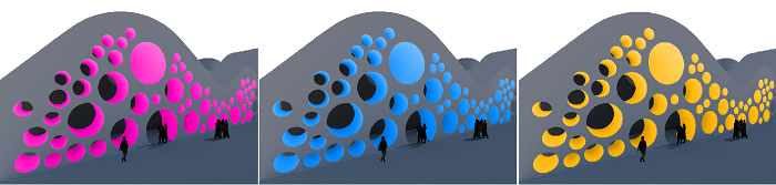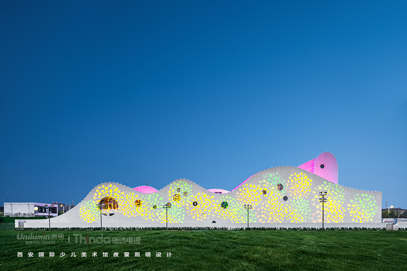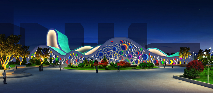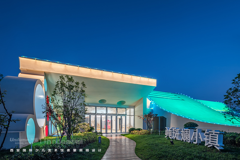 美術(shù)館整體建筑以多種圓形混搭繽紛色彩為基調(diào)并結(jié)合水系組成。信達電通以“色彩放飛心靈與夢想”為主題為美術(shù)館進行夜景亮化全過程服務(wù),打造大西安地區(qū)全新文化地標的夜景魅力。