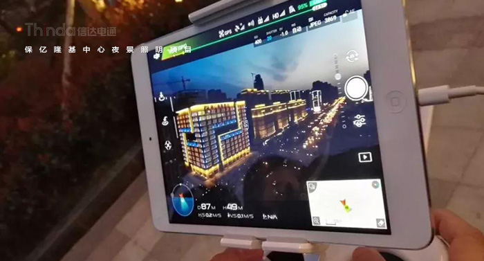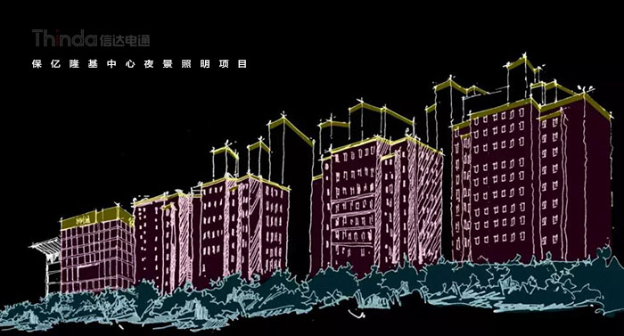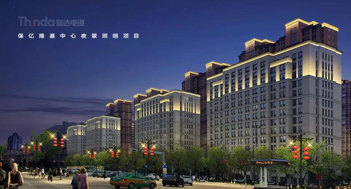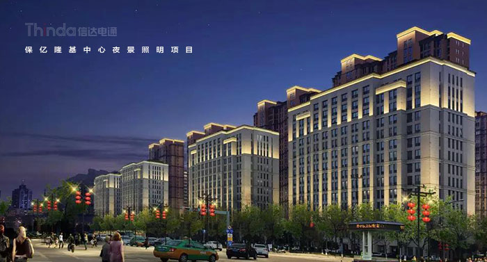 信達科技對保億隆基中心和風景御園等周圍建筑樓體進行亮度規劃,樓體頂部采用一級照明,突出建筑頂部結構,營造天際線的效果。