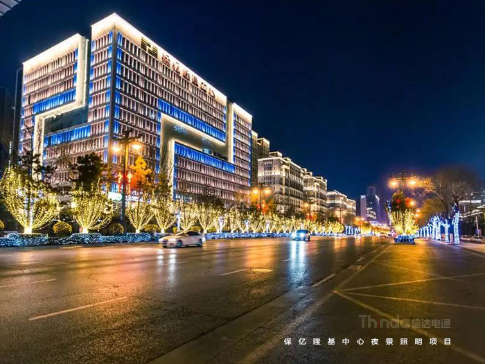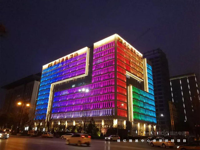 保億隆基中心位置特殊,屬于行政辦公范圍,因此建筑應符合市政類建筑照明要求,以黃、白光為主,體現莊重之感。信達科技設計組夜間多次調試燈光,以達到設計規劃預期效果。