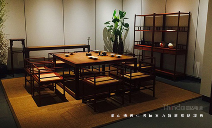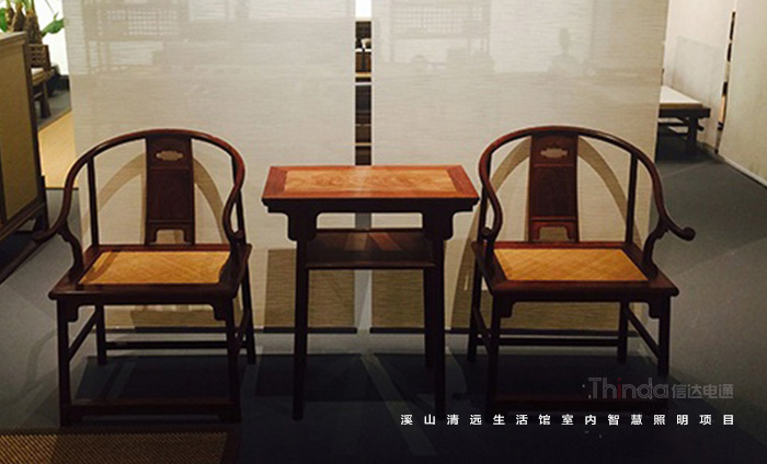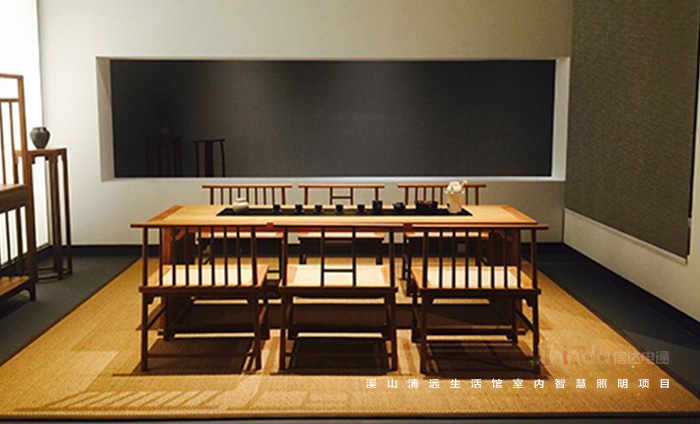 溪山清遠生活館是其公司在北京朝陽區設立的明式、宋代家具主題生活館。溪山清遠探究家具,是探究一種回歸。俗韻已行,塵網誤落,陶淵明欣慨之意,宜適今日。看紛紛擾擾,無休無歇,勞心廢形,永無止息。溪山清遠就是在居住意境上去建設一條回歸的曲徑,精簡,守靜,歸真。信達電通是溪山清遠生活館室內空間照明的設計及施工、控制系統一體化服務單位。