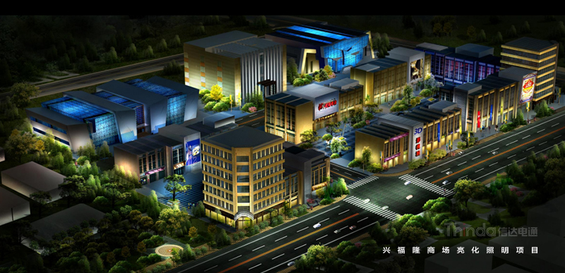 信達設計團隊已對烏蘭察布興福隆商貿城做了整體,全面的現場實勘和初步整理,現已設計出了,實用,高效,節能的方案以供其亮化照明使用。 經過現場實勘,信達設計組,對烏蘭察布興隆商貿城的餐飲區、住宿區、休閑區、娛樂區分別做出了突出其特點而又有相互一致性的設計方案。